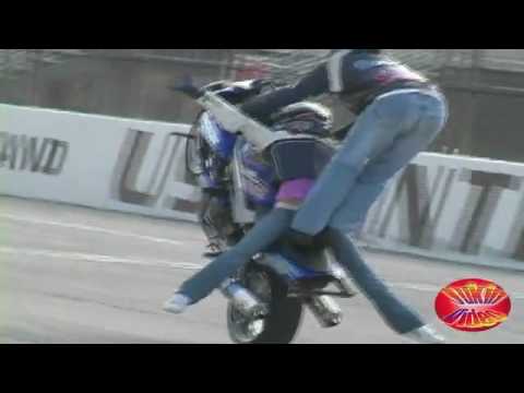 Pero cuando todo iba bien la chica que cambiaba de posiciones en cada aceleración de la moto en un movimiento inesperado la chica se cae de la moto pero una velocidad tal que sale volando más de dos metros hasta el suelo, mala coordinación o simplemente no calcularon bien pero la demostración acabo mal: